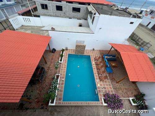 De lavado, piscina, duchas y baños, barbacoa, estacionamiento para 6 vehículos, a pocos pasos de la playa