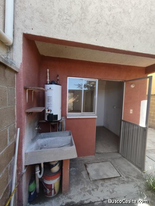 La casa tiene sala comedor, cocina integral, medio baño, patio amplio, cochera techada para 1 auto, en la planta alta tiene 3 recámaras, baño completo y un vestidor que se puede convertir en otro baño completo.