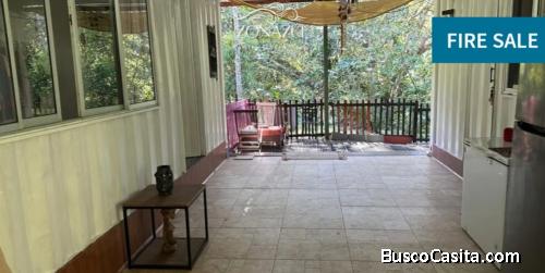 2 contenedores, (2 dormitorios 2 baños) pequeña casa de madera, pequeña bodega de plástico, techo grande