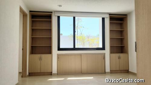 Excelente casa en El Canto con paneles solares y aires acondicionados LG Dual Inverter nuevos, en dos niveles con hermoso librero empotrado nuevo, amplia bodegacuarto de servicio en el patio con toldo plegable, sala-comedor, desayunador muy iluminado, cocina integral con lavavajillas marca SMEG nueva. En planta alta 3 recamaras, principal con amplio vestidor, aire acondicionado y libreros nuevos empotrados, 2 recamaras secundarias grandes que comparten baño. El condominio es uno de los más exclusivos de la zona, con vigilancia 24x7, circuito cerrado y guardia de seguridad en caseta, alberca climatizada, gimnasio, salón de usos múltiples, juegos infantiles y hermosos jardines. A 2 minutos de HEB, Chedraui, Fresko, Superama, todos los bancos, escuelas, UNAM, UAQ.