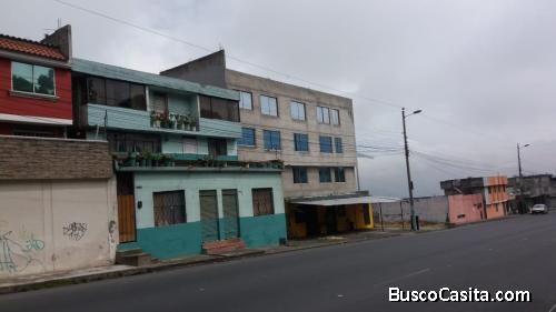 Se vende casa familiar de dos pisos con locales comerciales, patio trasero con amplio espacio o jardín. Lote de aproximadamente 400m2, ubicado en la Avenida Simón Bolívar junto a los jugos de caña. Primer piso con 3 dormitorios, sala comedor y cocina, segundo piso dos dormitorios sala comedor y cocina. Local comercial independiente frente a la avenida.