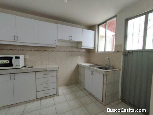 · Cocina cerrada con muebles altos y bajos y mesones de granito, con salida a patio posterior.