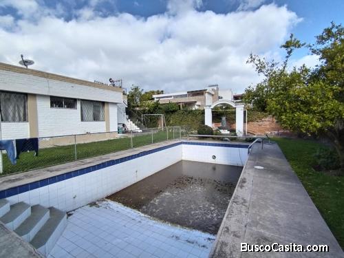 Linda casa independiente estilo rústico, una sola planta con diseño estructural (columnas) para dos pisos adicionales, cuenta con una piscina, patio, jardín, árboles frutales.