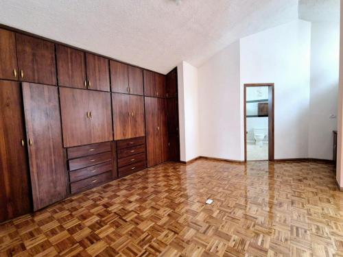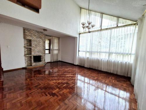La propiedad es a desniveles, se encuentra frente al parque municipal, dispone de 4 amplios dormitorios, sala principal con chimenea funcional, sala de estar, 2 comedores, cocina, estudio, área de servicio con baño, área de máquinas, bodega, terraza, 4 estacionamientos, áreas verdes y jardines
