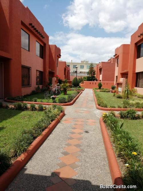 Casa en Dos plantas , Planta baja: Sala, Estudio (ampliación), baño social, comedor, cocina, bodega 1, patio 60 m2. Planta alta: Domitorio master con baño privado, dos dormitorios , un baño completo. Tercera planta: Terraza accesible. Subterraneo: Dos parqueaderos, más una bodega. Lindo conjunto habitacional de 31 casa con muy amplias áreas verdes, parqueaderos subterraneos, circuito de cámaras. A 5 minutos del nuevo Supermaxi, a una cuadra de la Av Ilaló