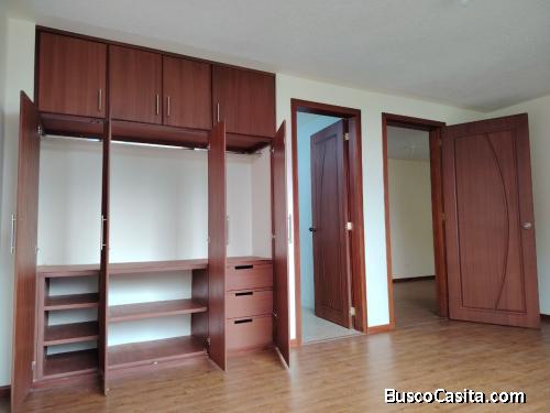 Dormitorio máster con clóset y baño completo.
