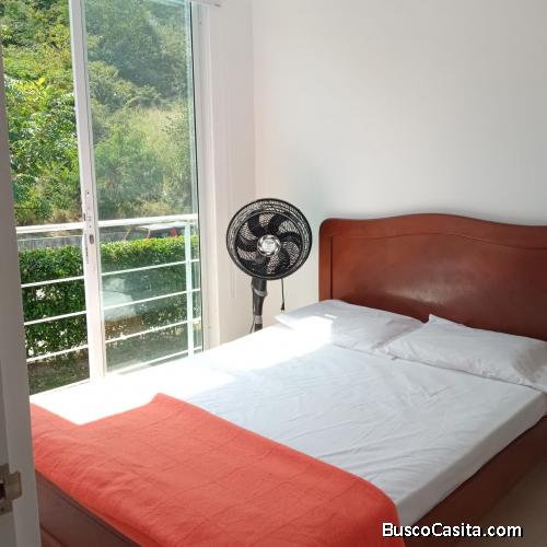 Excelente casa ubicada en Ricaurte Cundinamarca, dos pisos, parqueadero privado, tres habitaciones, dos baños, patio y jardín; pisos en cerámica, cocina semi-integral, con blackout y persianas, dos closets, opción de entrega amoblada con (estufa, nevera, mesa y silla Rimax, juego de sala, 4 ventiladores y cuatro camas ), el conjunto cuenta con dos piscinas grandes y dos jacuzzi, área de barbecue.