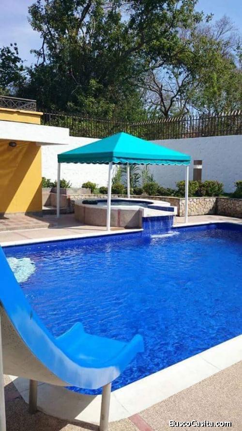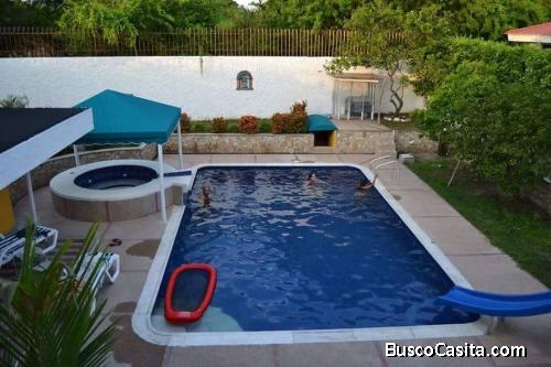 CASA CAMPESTRE RICAURTE CUND. 500 m2 construidos. 1 piso; sala comedor, cocina abierta, habitación de servicio, despensa, baño social, parqueadero 4 carros. Piso 2; 3 habitaciones, principal baño privado, vestier, baño familiar, sala TV, 3 terrazas. Área social: piscina, jacuzzi, Bbq, vestier, baño