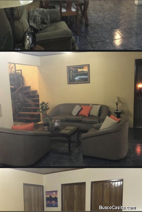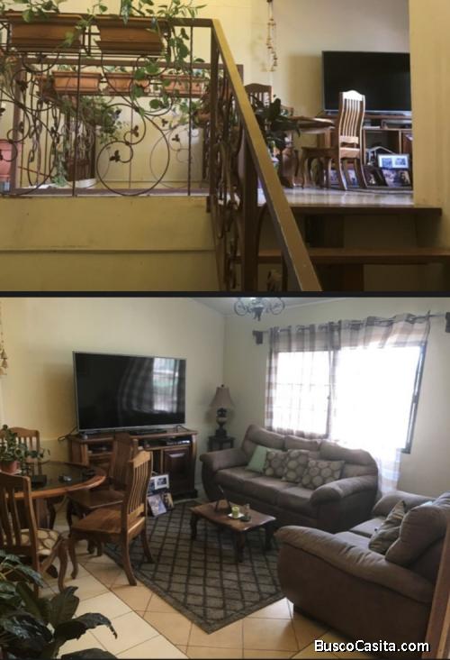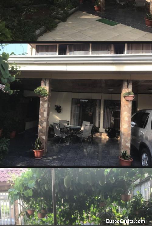 La casa es de 2 plantas y cuenta con 5 cuartos, 3 baños, sala, cocina, cuarto de pilas y una oficina.