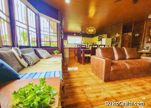 DESCRIPCIÓN DETALLADA: casa acogedora, estilo cabaña, de un nivel, completamente amueblada y equipada. Sus amplios ventanales permiten excelente iluminación y ventilación natural, creando un ambiente fresco y luminoso. La propiedad cuenta con una amplia zona social que integra la piscina, un rancho abierto ideal para reuniones, área de descanso y jardín. La cocina-comedor está totalmente equipada con electrodomésticos y acabados de alta calidad. Está ubicada en un residencial abierto a solo 3 minutos del centro de La Fortuna y a 10 minutos de los principales hoteles y aguas termales. Cerca de restaurantes, supermercados, escuelas y la clínica local. Una propiedad perfecta para vivir rodeado de naturaleza o como inversión para Airbnb en una de las zonas turísticas más visitadas del país.