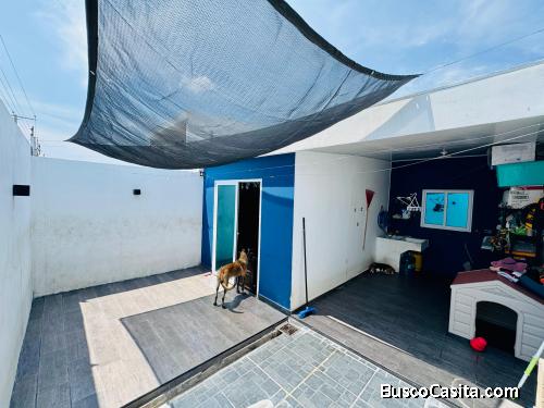 Se vende casa en Residencial La Ciudad Marsella, remodelada, dos habitaciones con AC, sala comedor con AC, Cochera techada 2 carros, área de lavado-Bodega y terraza techada. Información mas inbox