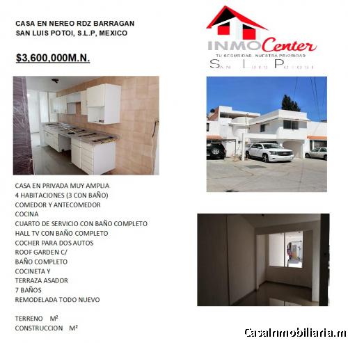 TIENE SALA MUY AMPLIA,COMEDOR, ANTECOMEDOR, COCINA 4 RECAMARAS,TRES BAÑOS COMPLETOS, CUARTO DE SERVICIO CON BAÑO, HALL PARA TV,CON BAÑO COMPLETO, COCHERA PARA DOS AUTOS, RECIEN REMODELADA,, TIENE CANCELERIA EN ALUMINIO, PISO DE PORCELANA, CUENTA CON CISTERNA DE 2500L