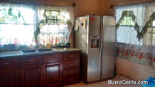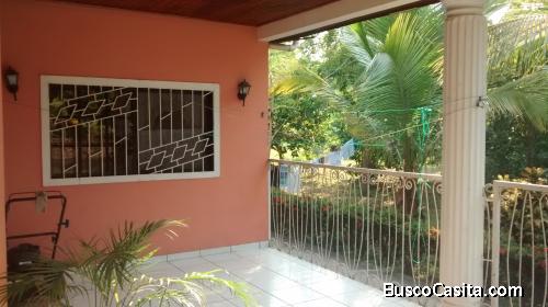 Bonita y acogedora casa, ubicada exactamente en el Sector Arenales de San Pedro Sula, carretera a Ticamaya, que consta de 1 nivel, tres habitaciones, dos baños, la habitación principal con su baño privado y jacuzzi, , sala comedor, cocina con top de granito y muebles de madera de caoba, desayunador, área de lavandería interna, cielo falso de machimbre con madera de color, un amplio porch al frente, garaje techado para dos vehículos, amplio patio ( 2,478.79 varas cuadradas) y con árboles frutales.