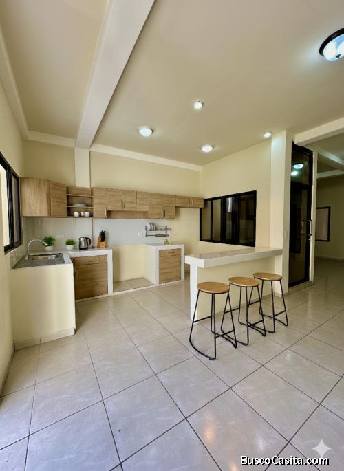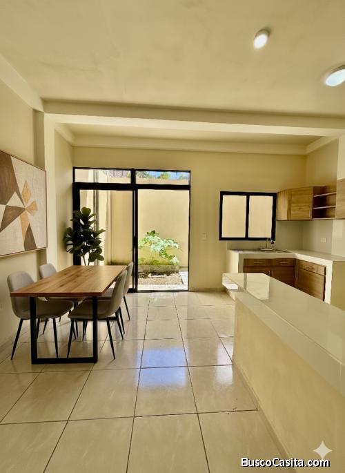 Propiedad completamente nueva de dos niveles, cuenta con parqueo techado, portón automático, techos altos y áreas sociales integradas.