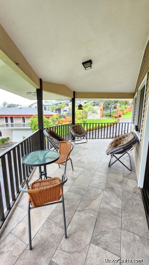 DESCRIPCIÓN DETALLADA: casa amueblada de estilo americano, con una amplia sala de estar que ofrece excelente iluminación natural. Cuenta con comedor y sala de TV con acceso directo al balcón, así como una cocina integrada con sobres de granito. Los dormitorios principales disponen de baño privado con sobres de mármol. La propiedad se encuentra en un exclusivo condominio privado de tan solo 10 casas, ubicado a pocos minutos del centro de Santa Bárbara. Está rodeada de amplias zonas verdes y ofrece una increíble vista panorámica al Valle Central y a las montañas de Heredia. Dispone de acceso vehicular desde el primer y segundo nivel, servicio de seguridad. Cuota de mantenimiento ¢150.000.