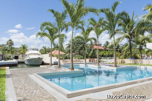 Esta hermosa Residencia con vista al canal cuenta con un espacioso Recibidor con techos de doble altura, Sala, Comedor, Cocina Gourmet con Desayunador, Bar, 2 medios Baños, 5 Recamaras con 5 baños completos y Cuarto de Servicio con Baño.