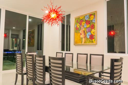 Lujosa residencia en la que basta poner un pie en el vestíbulo para sumergirse en una atmosfera inigualable, sus techos a doble altura y los grandes ventanales permiten una vista imponente creando una atmosfera de exclusividad, Lujo y Confort.