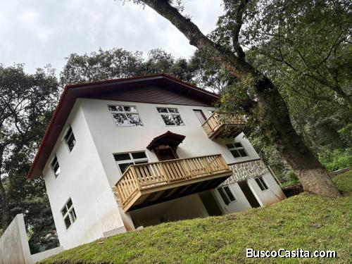 Cuenta con 3 plantas con construcción sólida, techo a 2 aguas, acabados de piedra y madera, con una linda vista al bosque, parqueo para 2 o 3 vehículos, cuenta con jardín frontal y trasero, está construida en un terreno amplio y plano, posee árboles propios de la región, y un ambiente que proporcionan tranquilidad, seguridad y armonía.
