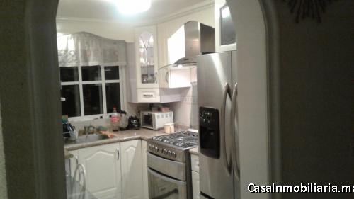 Dispone de área de sala, comedor, cocina integral, tres recámaras, dos de ellas con clóset, estancia en 3er piso, dos medios baños y uno completo, área de lavado, estacionamiento para dos autos, gas estacionario.