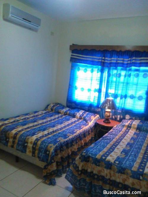 Se vende casa bonita de playa en Tela Cuenta con 1 nivel, 4 habitaciones, 3 baños, sala, comedor, cocina, piscina, en complejo privado frente al mar con vigilancia 24/7.