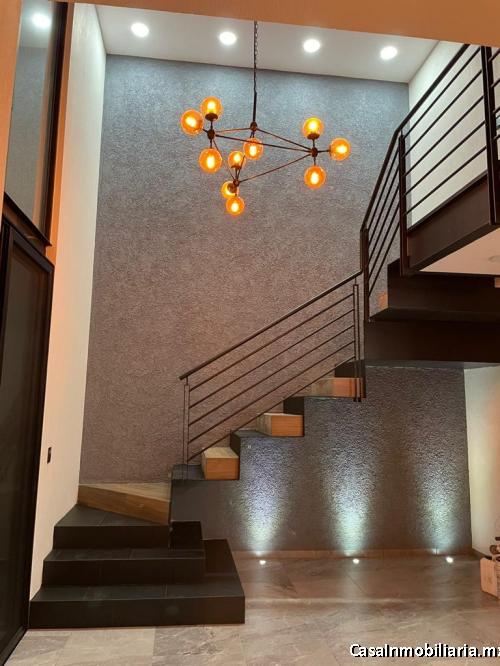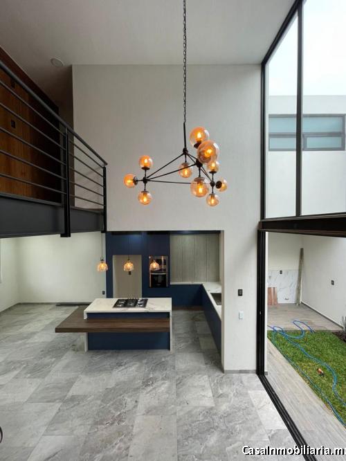 Casa de lujo, 3 recamaras, 2 baños completos y 1 medio baño sala, comedor doble altura, cocina equipada, acabados de lujo y sistema inteligente.