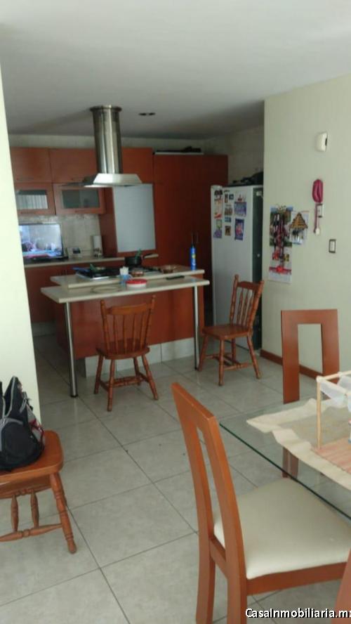 Sala-Comedor, Cocina integral, medio Baño, Patio de Servicio, cochera para tres Autos y en la Planta Alta con: tres Recámaras, la principal con cómodo Vestidor y Baño completo, las recamaras secundarias comparten Baño