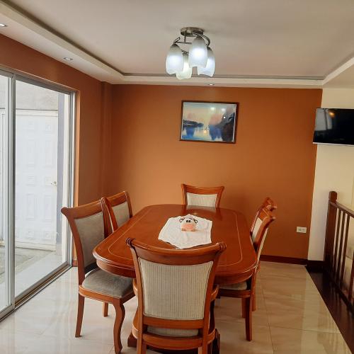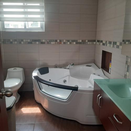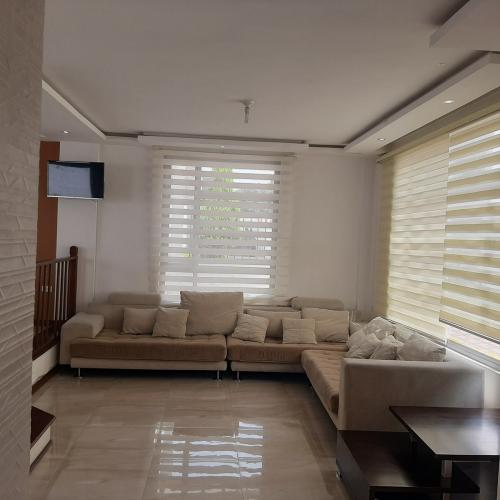 La casa está construida en 3 plantas, su distribución interna es la siguiente: Planta baja: Recibidor, Sala principal, comedor, cocina, bodega y 12 baño social; Primera planta alta: 2 dormitorios con baño privado cada uno y sala de estar; Segunda planta alta: Amplio dormitorio máster baño privado con yacusi, cabina y Wolking closet; dispone además de 3 estacionamientos cubiertos, área de máquinas y patio posterior