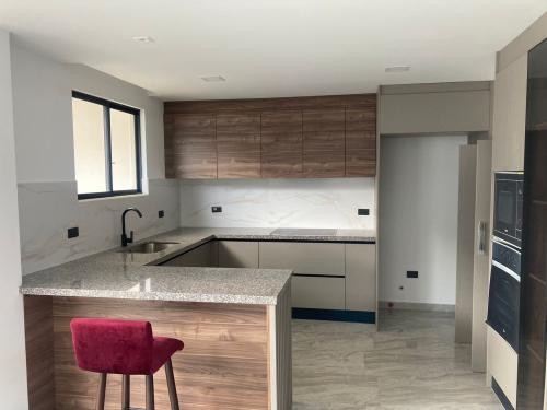 Sus acabados son de primera, tiene porcelanato en la parte social, piso flotante importado en los dormitorios y mesones de granito en la cocina