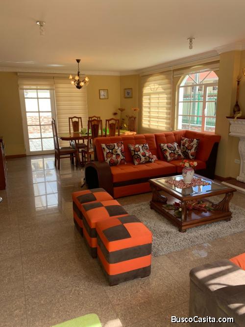 Se vende hermosa casa de 2 pisos, esquinera con acceso en ambas calles, 190,46m2 de construcción en terreno de 346m2. Ubicada en urbanización privada, sector Capelo, a 10 min del triángulo, San Luis Shopping y Comercial del Valle de los Chillos.