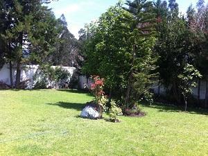 En la parte posterior de la propiedad, se encuentra el área del BBQ. con horno de leña para preparación de parrilladas; se encuentra también el área de estacionamiento cubierta para 2 vehículos y otros 2 estacionamientos descubiertos; además, observamos espacios verdes, frutales y hermosos jardines. La propiedad dispone de un pozo de agua funcional con bomba, dos líneas telefónicas, acometidas para Televisión Satelital, internet y citó fono; la puerta de ingreso peatonal es a control remoto.