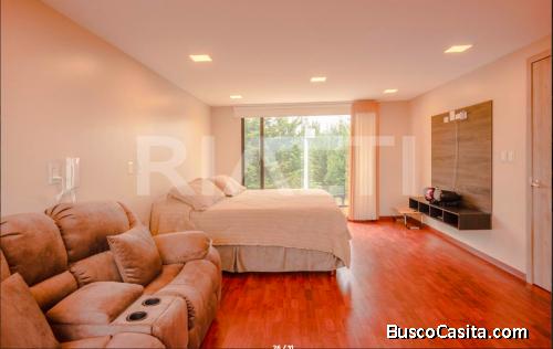 Tercer Piso: Dormitorio master, sala de alcobas, área de gimnasio, baño completo, walk in closet.