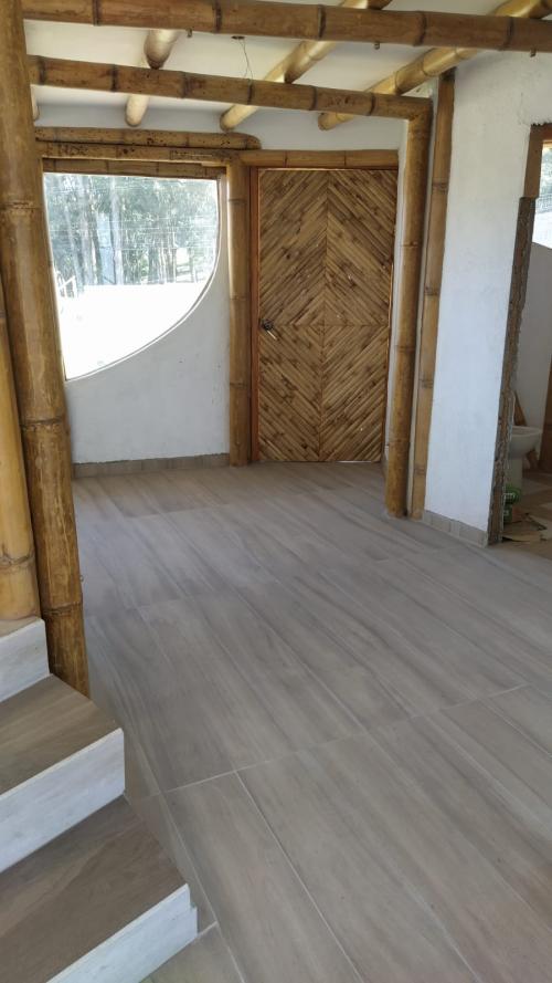 La construcción es en 2 plantas, tipo rústica, tiene 2000m2 de terreno esquinero, por lo tanto tiene dos frentes, el uno da a la vía principal