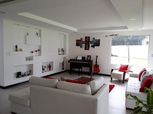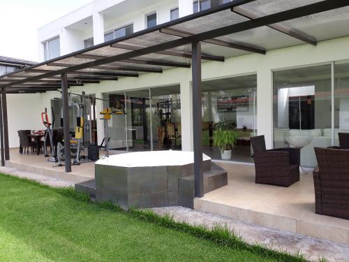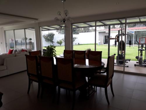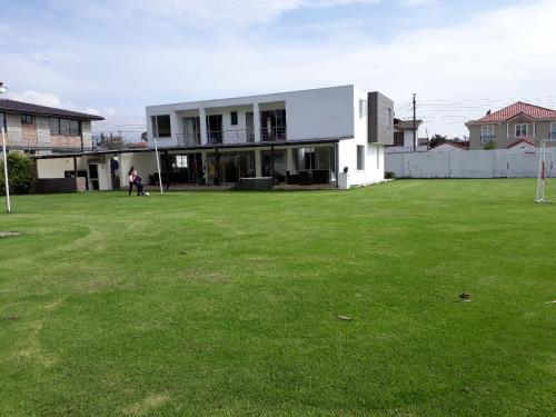 La propiedad consta de 1525m2 de terreno con cerramiento propio, la casa principal en 2 plantas, sus acabados son de primera, los pisos del área social de fino porcelanato y de los dormitorios de madera; se aprecia una área verde de aproximadamente 1000m2, y una construcción adicional en la parte posterior de aproximadamente 100m2 destinada para el área de juegos, baños y duchas