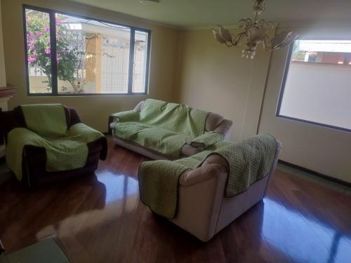 Se aprecia además, una área recreacional cubierta, donde funciona una piscina con paneles solares, un BBQ, sala y comedor Tiene una área verde, árboles frutales y huerto y hermosos jardines
