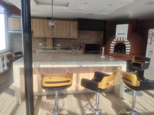 Consta de 4 amplias habitaciones con baño privado cada una y una suite, sala principal con chimenea, comedor principal, cocina estilo americana, salón de juegos, estudio, bodega, parrilla de acero inoxidable