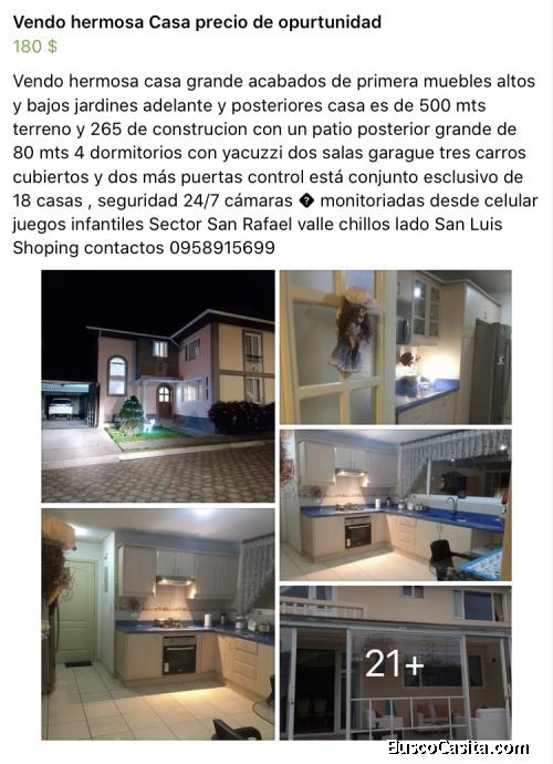 Vendo hermosa casa grande 500 mts de terreno 265 de construcion totalmente independiente patio grande de 80 mts jardines adelante acabados de primera está un exclusivo conjunto de 17 casas guardiania las 24/7 cámaras de seguridad monitoreo desde el celular precio negociable contacto 0958915699