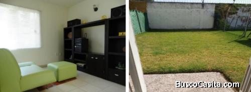 La Casa es de dos niveles, 3 recamaras, sala comedor, cuarto de estudio y/o t.v. cocina integral, recibidor, área de lavado, jardín. gas estacionario, boiler de gas y tinaco de 1100 lts. con/sin amueblar si lo desea. Previa cita.