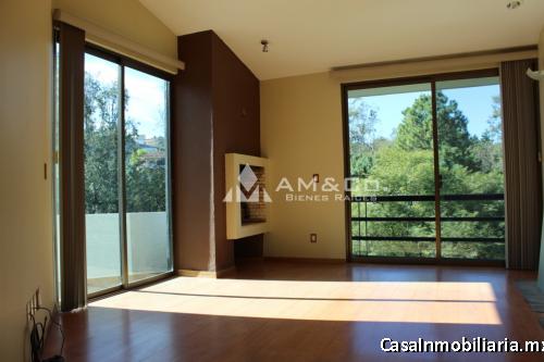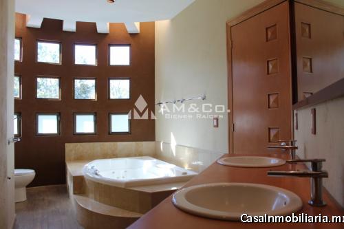 Muy iluminada techos doble altura , Sala doble altura, vista al bosque con chimenea bar y fuente, Comedor a desnivel con vista y fuente, Cocina integral, madera de maple, 2 barras de granito, equipo importado estufa y horno oversize teka, 3 tarjas, triturador, y lavavajillas, dos medios baños, Gimnasio estudio con vista al bosque, amplio jardín, con riego por aspersión, cuatro recamaras la principal con chimenea, de gas, amplio vestidor baño completo jacuzzi y dos balcones, una recamara con vestidor baño estudio y tapanco, dos recamaras más con sus closets, estar de televisión con chimenea de gas, cochera cuatro autos, amplias bodegas con closet para jardinería, Acabados en interceramic cristal templado en baños, Equipada con persianas y lámparas led, sensores de presencia alarma.